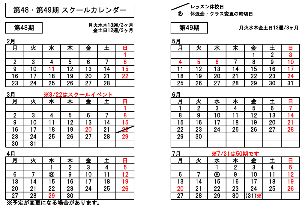 ※ 家族割引制度(お二人目以降) -1,100円受講クラス 受講料 12週の場合 13週の場合 J1 体験レッスン 1,100円 週1(70分) 9,900円 10,725円 2クラス目以降複数受講割引 -1,980円 -1,980円 J2 体験レッスン 1,100円 週1(70分) 10,800円 11,700円 2クラス目以降複数受講割引 -1,980円 -1,980円 J3